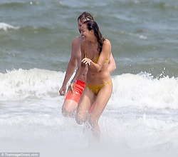 Ирина продемонстрировала идеальную фигуру в бикини горчичного цвета. Брэдли явно получал удовольствие от того, что рядом с ним такая красавица. Пара надолго уходила в океан, целовалась, обнималась, полностью отдаваясь своим чувствам.