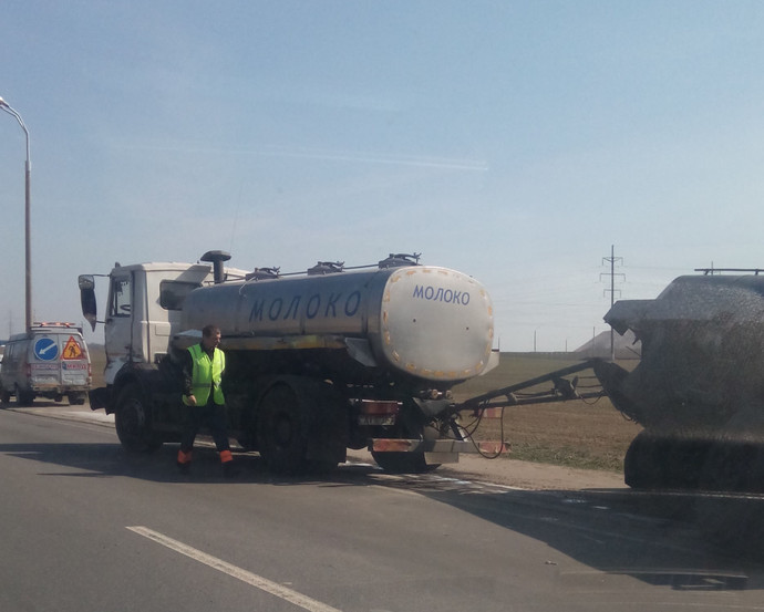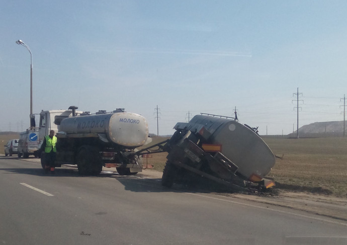 А вот сам молоковоз получил серьезные повреждения. Так, ударом о мачту освещения оторвало заднее колесо прицепа. Никто не пострадал. По данным инспекторов, водитель был трезв.