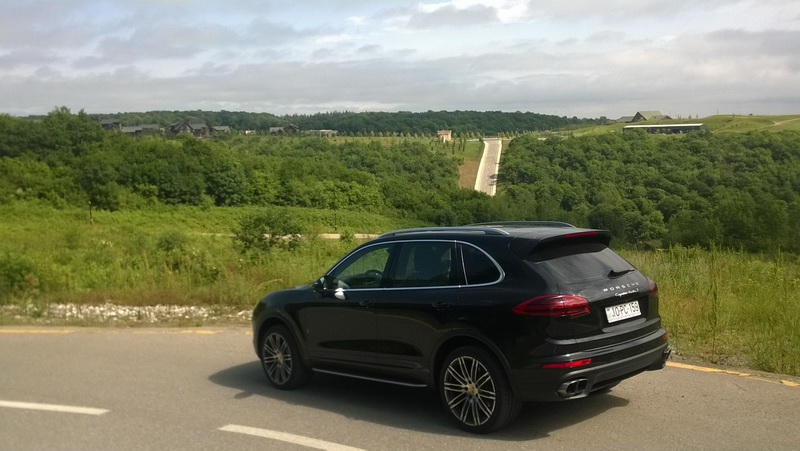 На тест-драйв были представлены новые версии модели Cayenne: это белая Cayenne c 6 цилиндрами и объемом двигателя 3,6 литра, мощностью 300 л.с., с максимальной скоростью 240 км/час и ускорением до 100 км за 7,7 секунд.