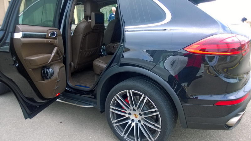 И черный Cayenne Turbo S, который был ещё интересней, так как под капотом у этого монстра скрывался двигатель с 8 цилиндрами и объемом 4,8 литра, мощностью 520 л.с. с ускорением до 100 км за 4,5 секунд и с максимальной скоростью 279 км/час.