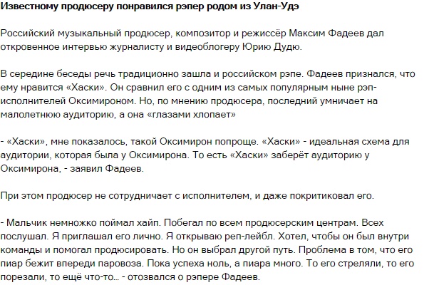Напомним, под ником «Хаски» выступает уроженец Улан-Удэ, восходящая звезда русского рэпа, Дмитрий Кузнецов. Несколько лет молодой человек живёт и работает в Москве.