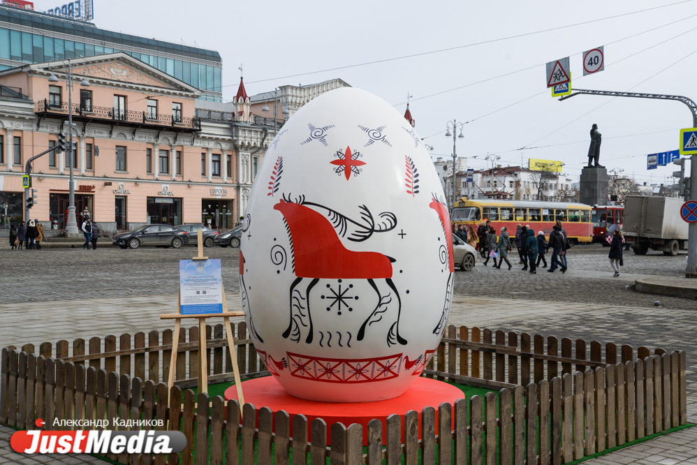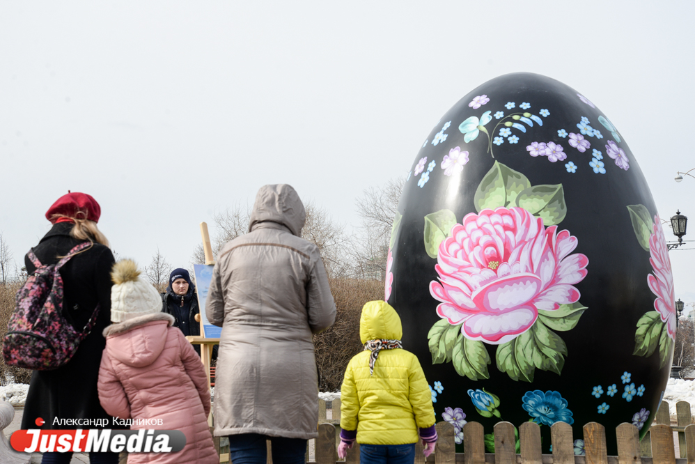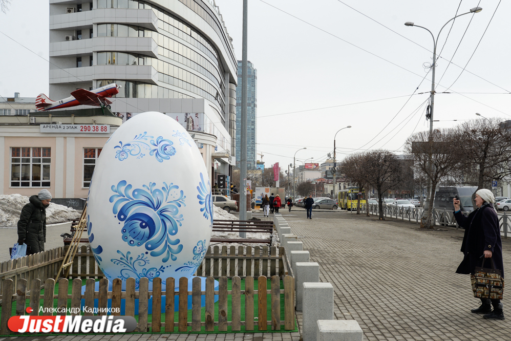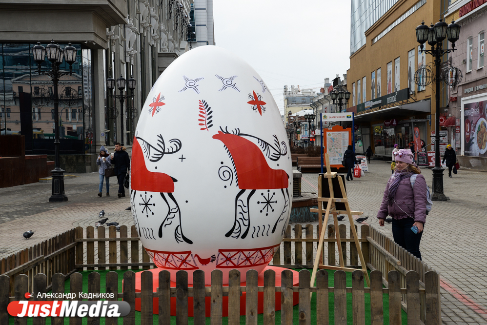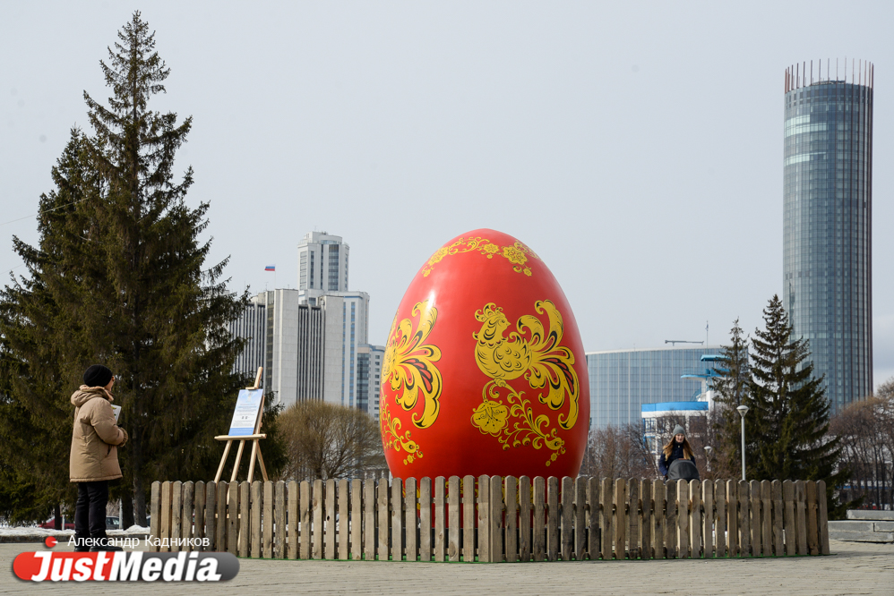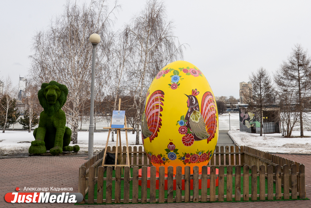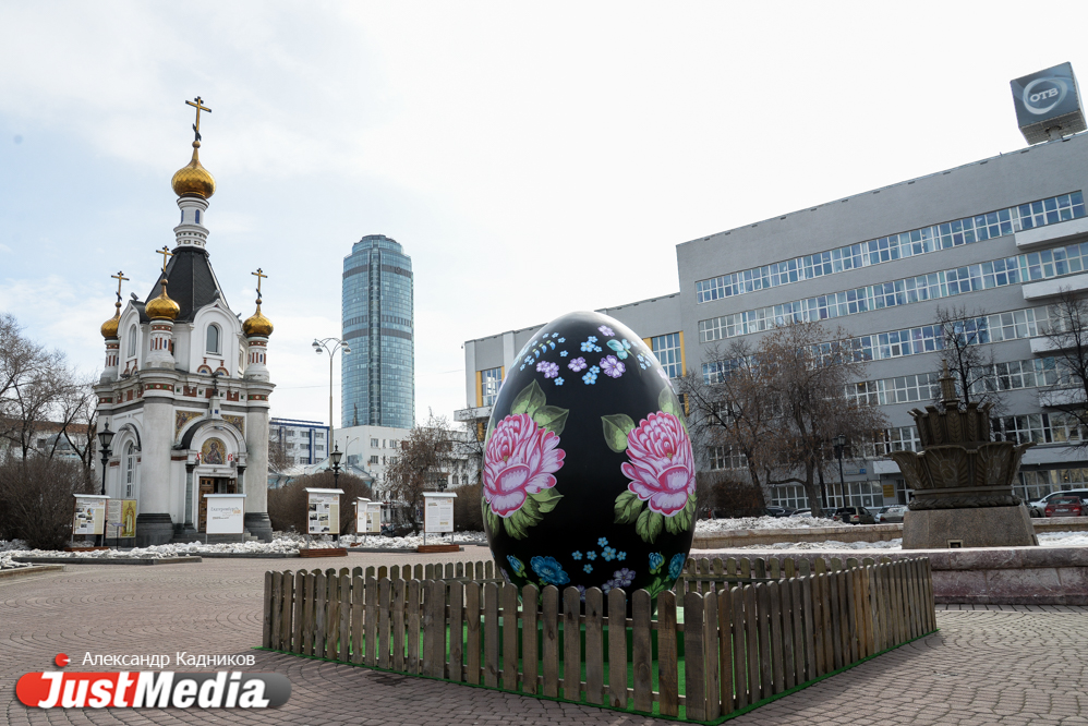 В центре Екатеринбурге еще вечером появились большие интерактивные пасхальные яйца. Из высота от 2,5 до 3-х метров. Проект был реализован по инициативе Фонда святой Екатерины в преддверии празднования Пасхи. Фотограф JustMedia.ru прогулялся по пасхальному маршруту и запечатлел красочные яйца.
