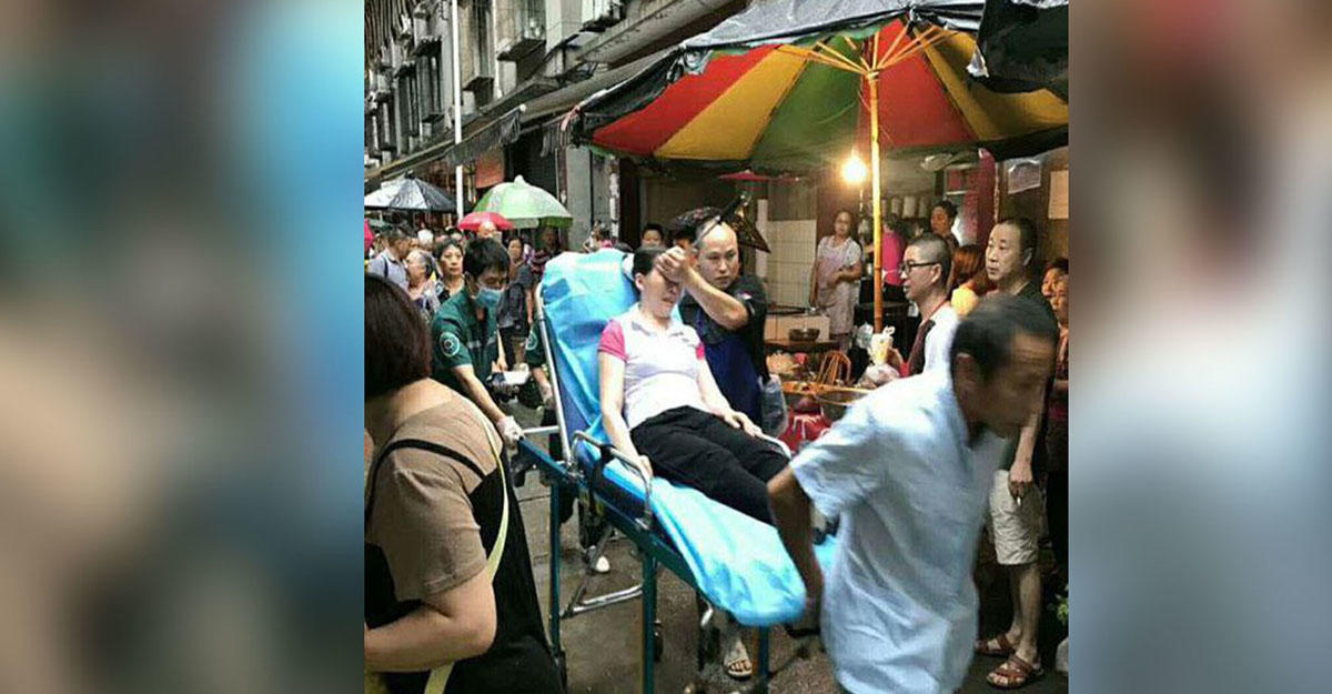 Инцидент произошёл в Китае в местном стейк-ресторане на прошлой неделе, однако видео с пострадавшей появилось в Сети только сейчас. На шокирующих кадрах женщина лежит на носилках, в то время как из её головы торчит огромное лезвие, передает Day.Az со ссылкой на life.ru.