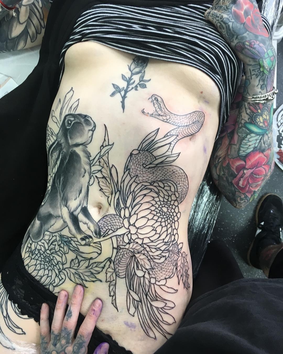 Предупреждаем сразу, если ты решишься на тату на животе, тебя ждет большое испытание. Это одно из самых чувствительных мест! Но оно того стоит, не правда ли?