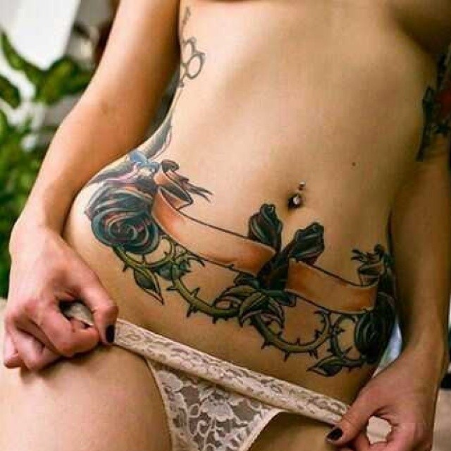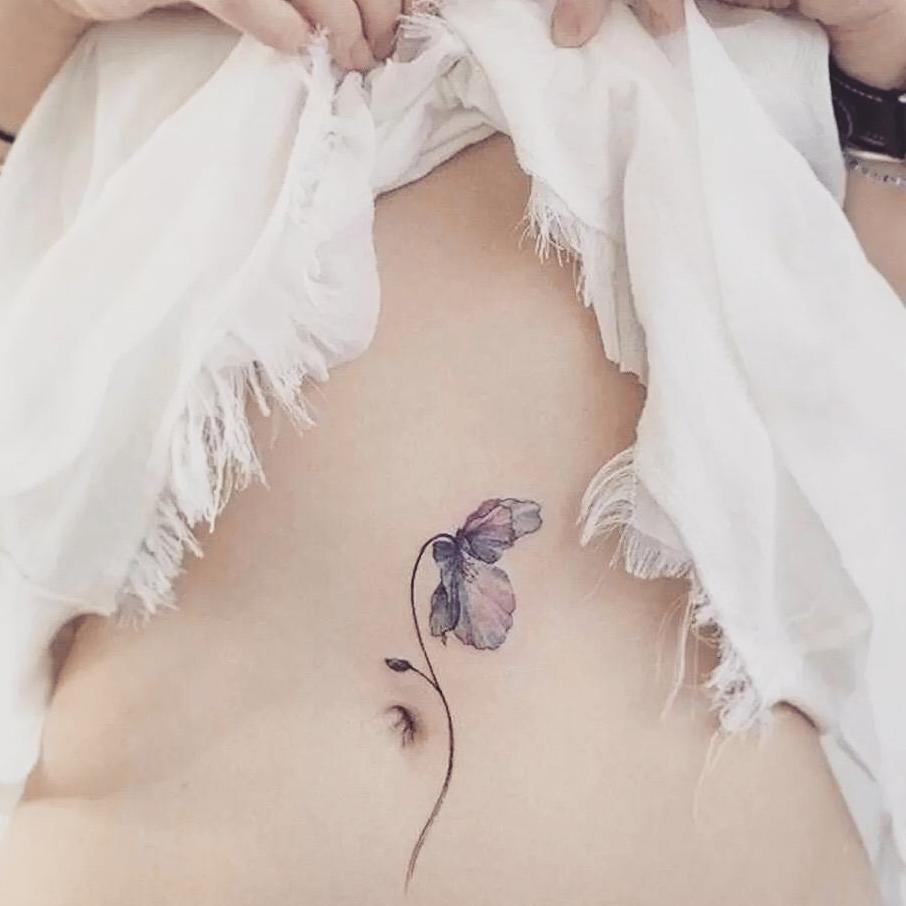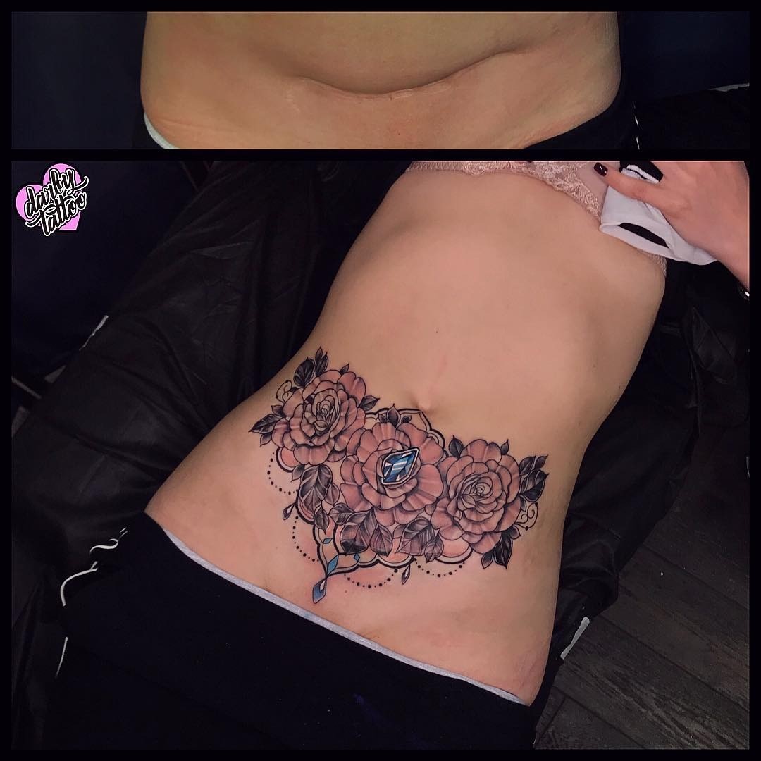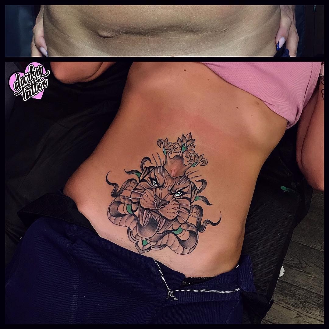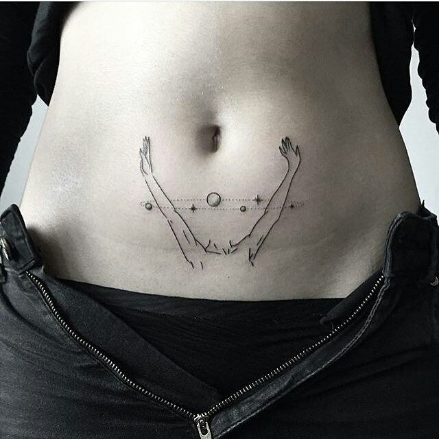 Что касается места нанесения изображения, то девушки чаще выбирают низ живота или область возле пупка. Бывает, что тату занимает значительную часть живота — обычно так замаскировывают шрамы и растяжки.