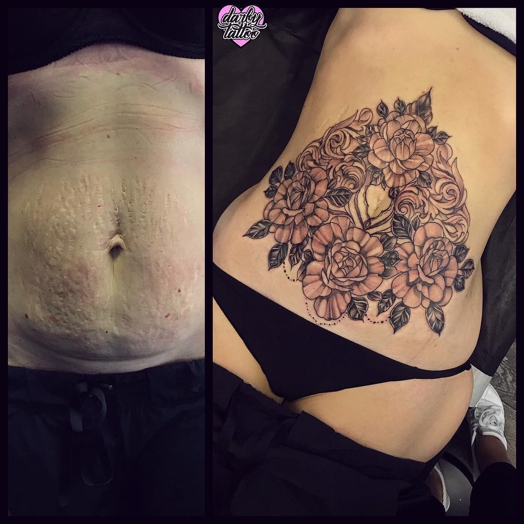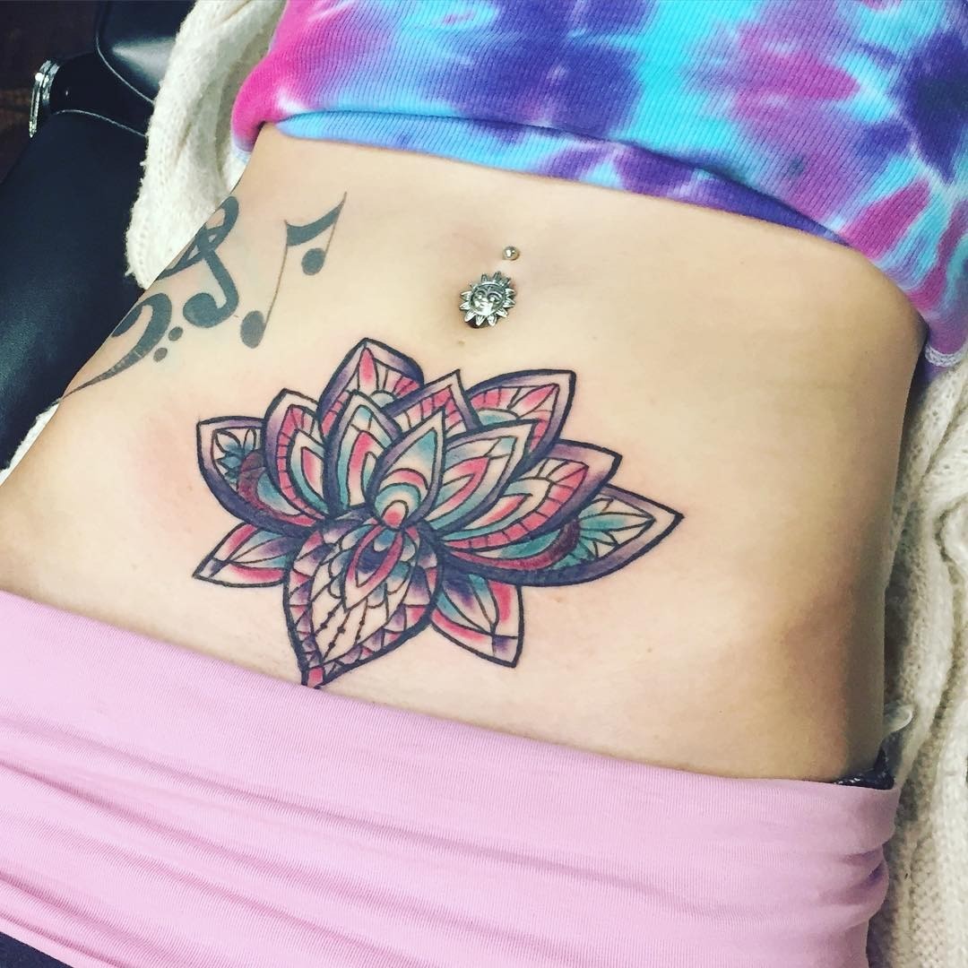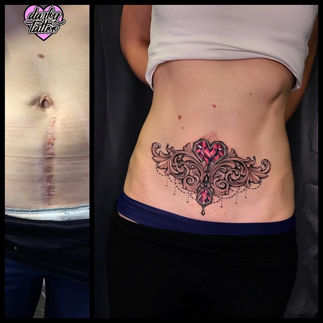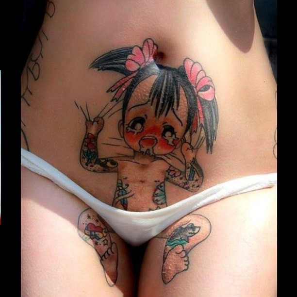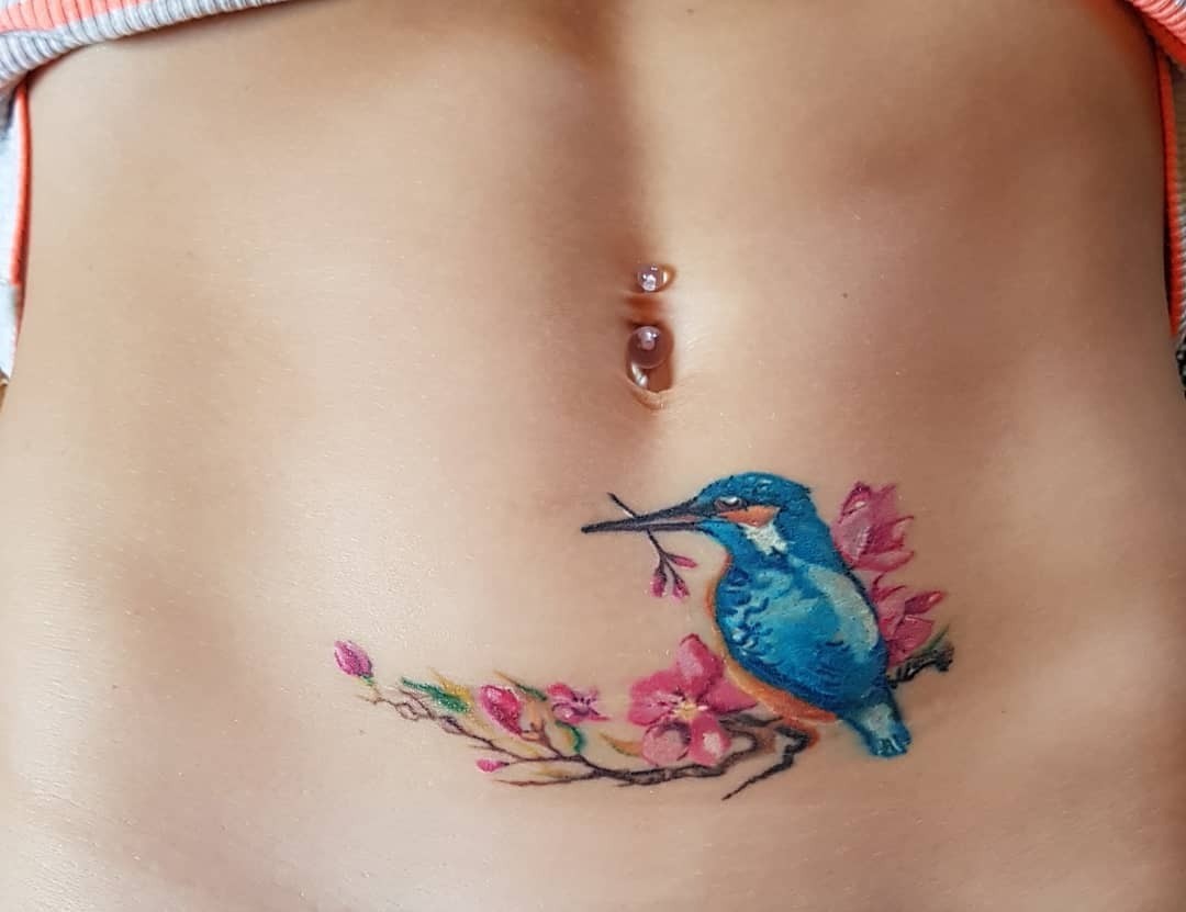 Что касается места нанесения изображения, то девушки чаще выбирают низ живота или область возле пупка. Бывает, что тату занимает значительную часть живота — обычно так замаскировывают шрамы и растяжки.
