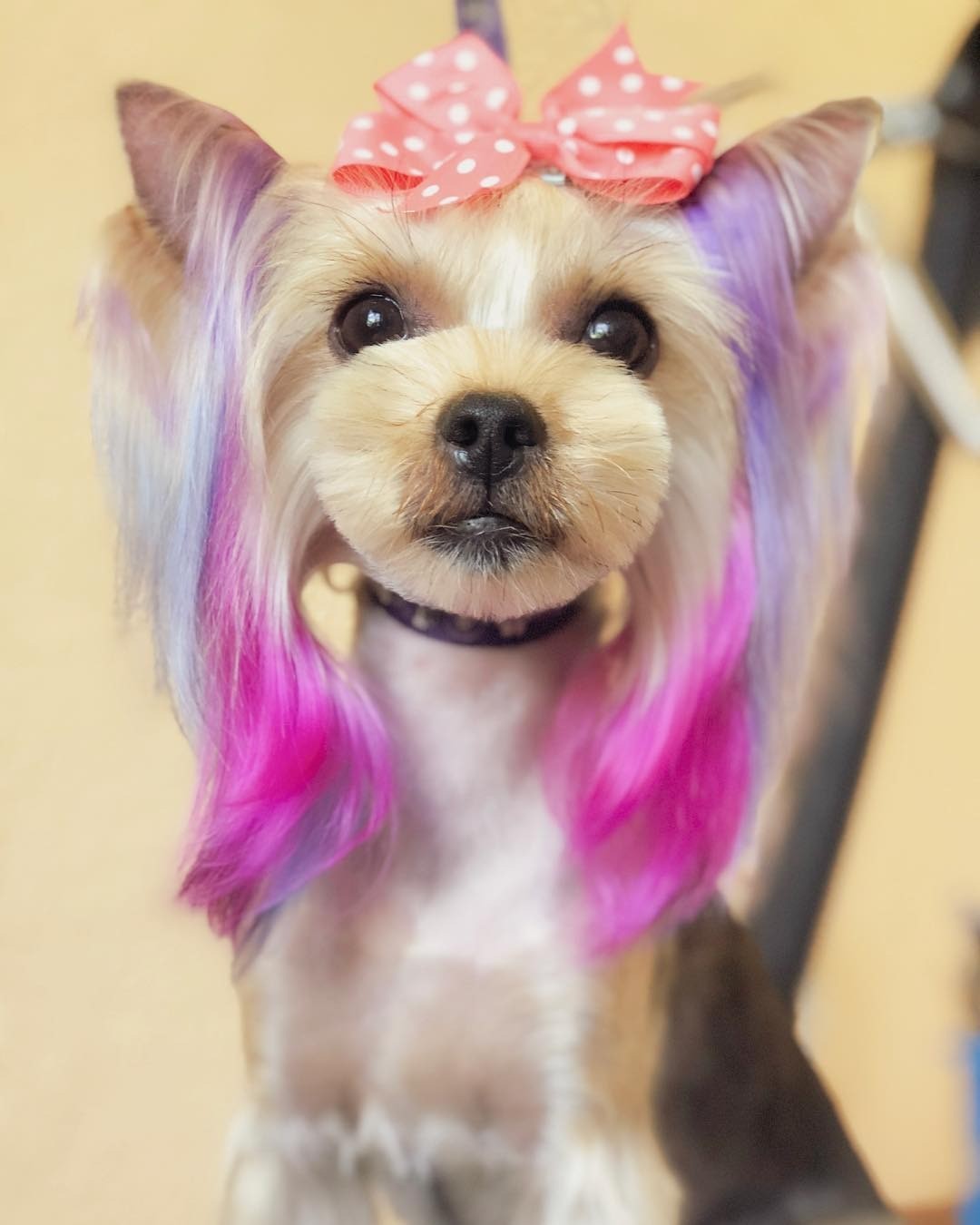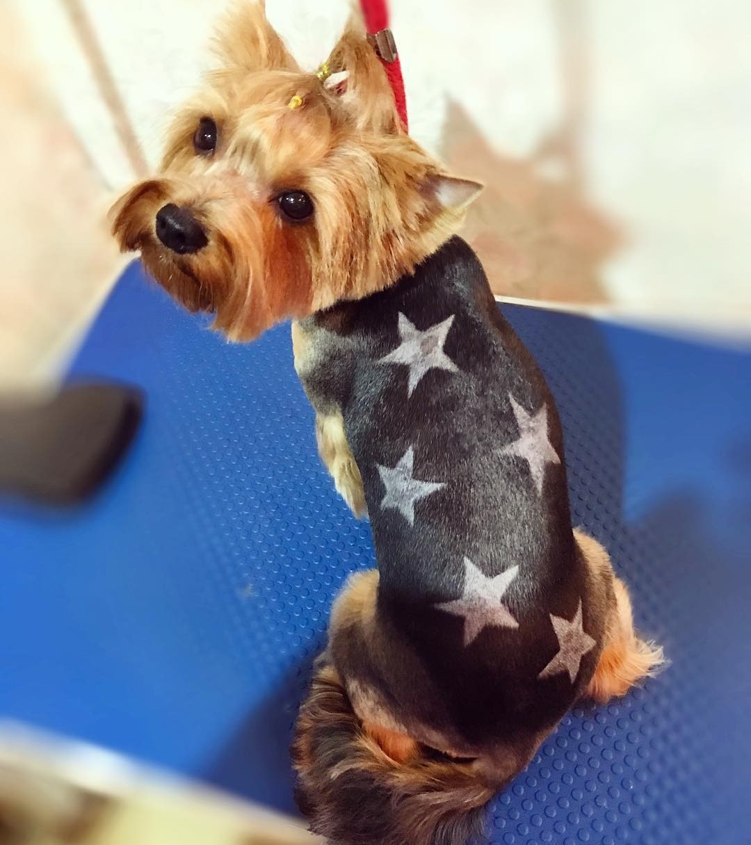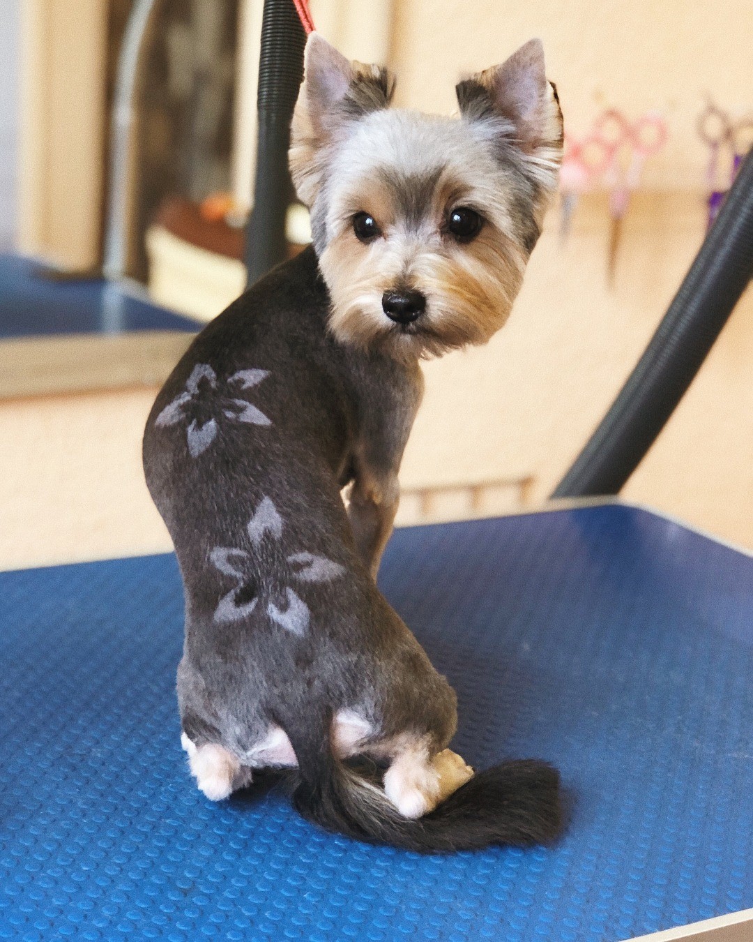 Если хозяину йорка хочется еще больше разнообразия, то можно выбрать креативный груминг. Например, отдать предпочтение цветному окрашиванию прядей. Это может быть как полное, так и частичное окрашивание. Или же выбрать стрижку в виде узоров — профессиональный стилист может выбрить на спине собаки почти любой рисунок, к примеру, елочку на Новый год или футбольный мяч к очередному чемпионату. Также можно наклеить стразы на ушки и спину, заплести косички или даже добавить леопардовый принт на шерсть животного в виде боди-арта.
