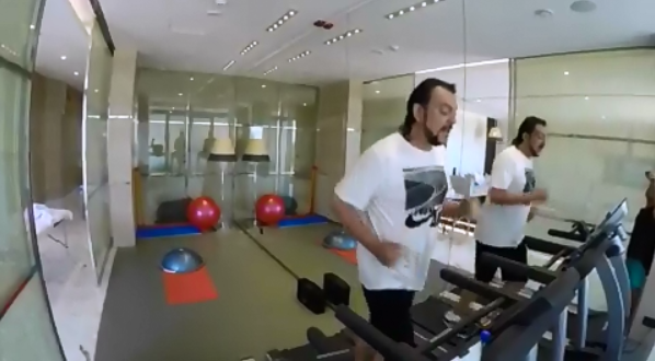 Он не приемлет тяжелые физические нагрузки, предполагающие накачивание мышц при помощи занятий со штангами, но с удовольствием и довольно регулярно занимается бегом и выполняет другие кардио-упражнения, плавает в бассейне,занимается йогой и посещает жиросжигающие спа-процедуры.