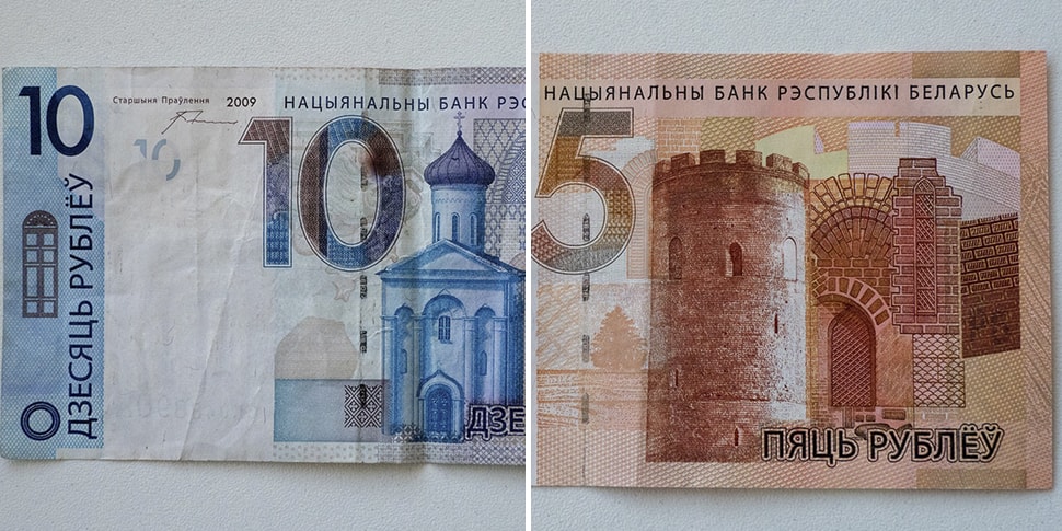 Напомним, на банкноте в пять рублей изображена Каменецкая вежа, на 10-рублевке — полоцкая Спасо-Преображенская церковь.
