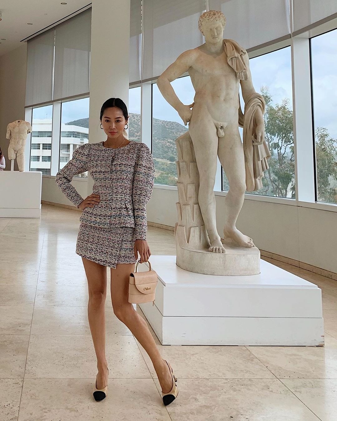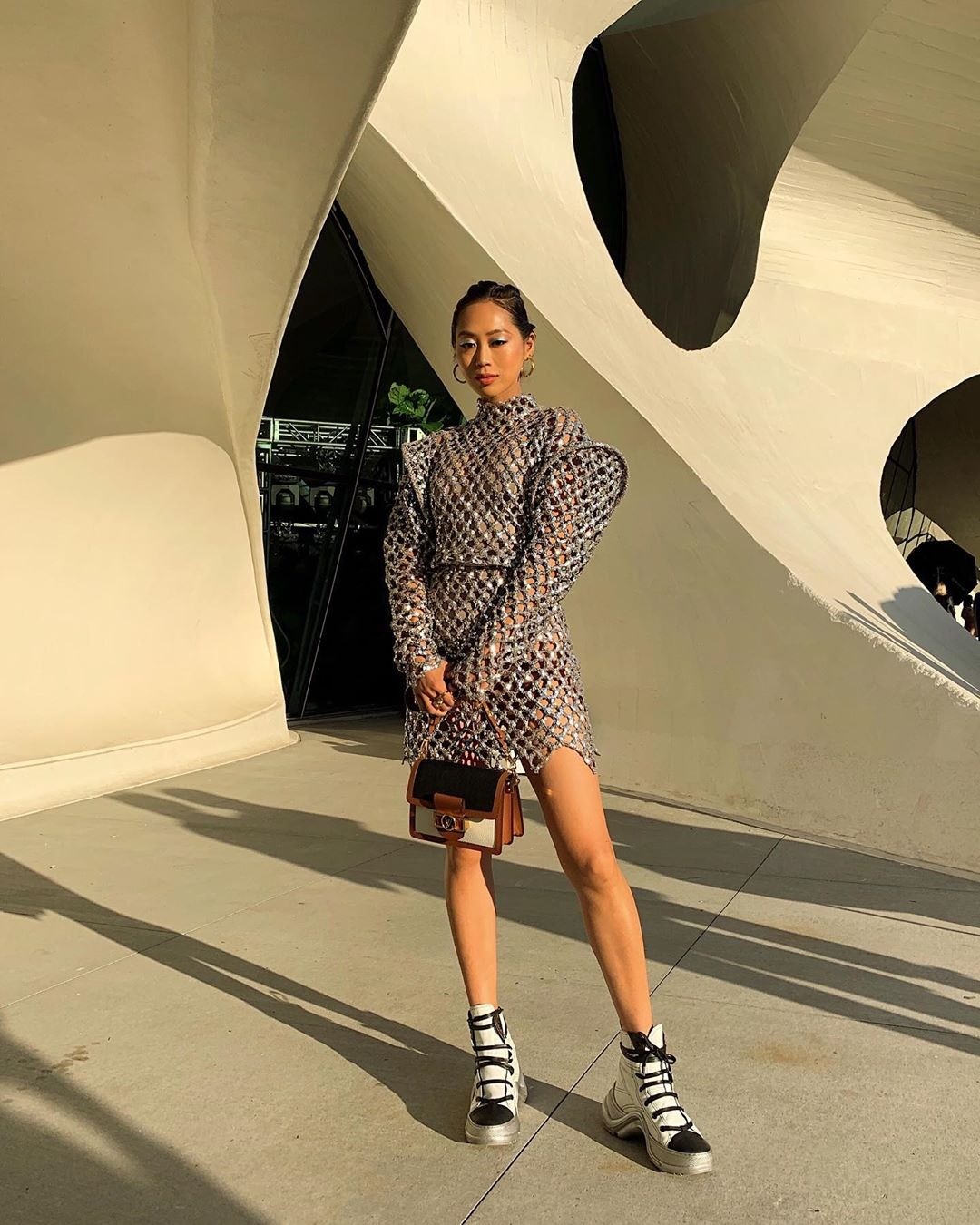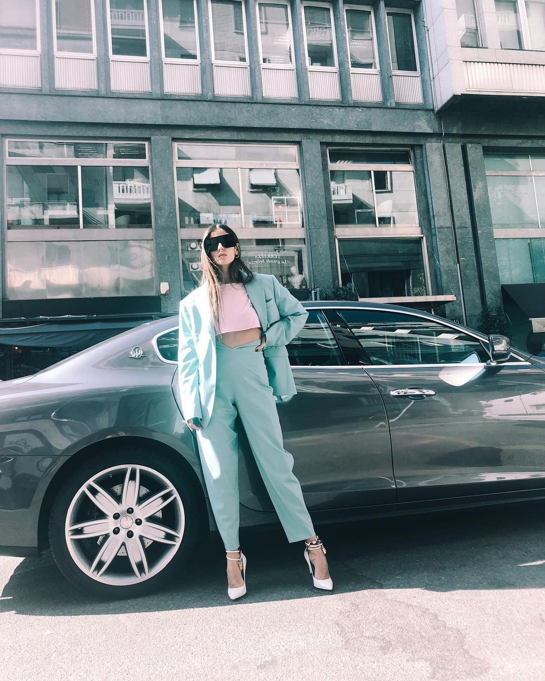 В выборе аксессуаров и сумки отдай предпочтения базовым моделям — лаконичный украшениям без камней, шейному платку, солнцезащитным очкам, сумке кросс-боди лаконичного дизайна и другим подобным.
