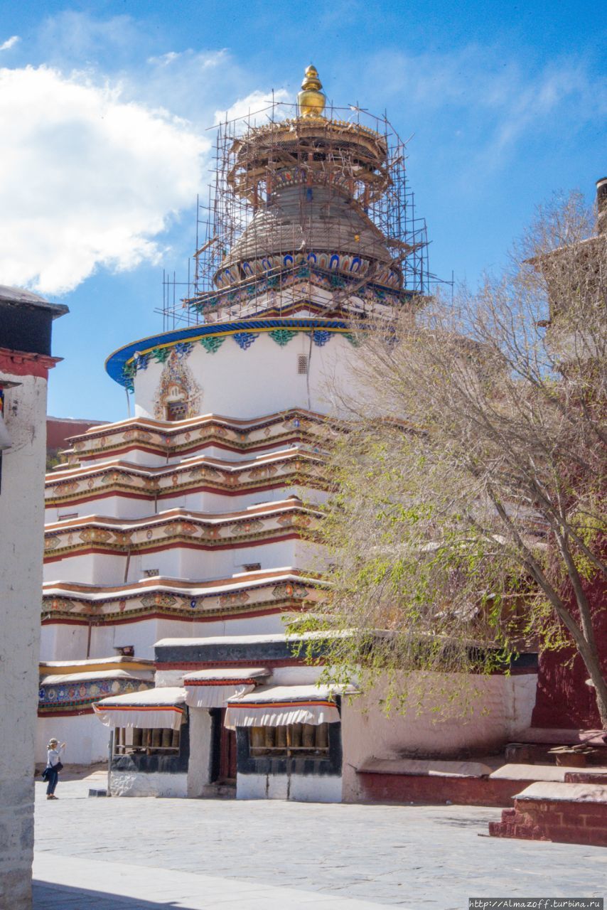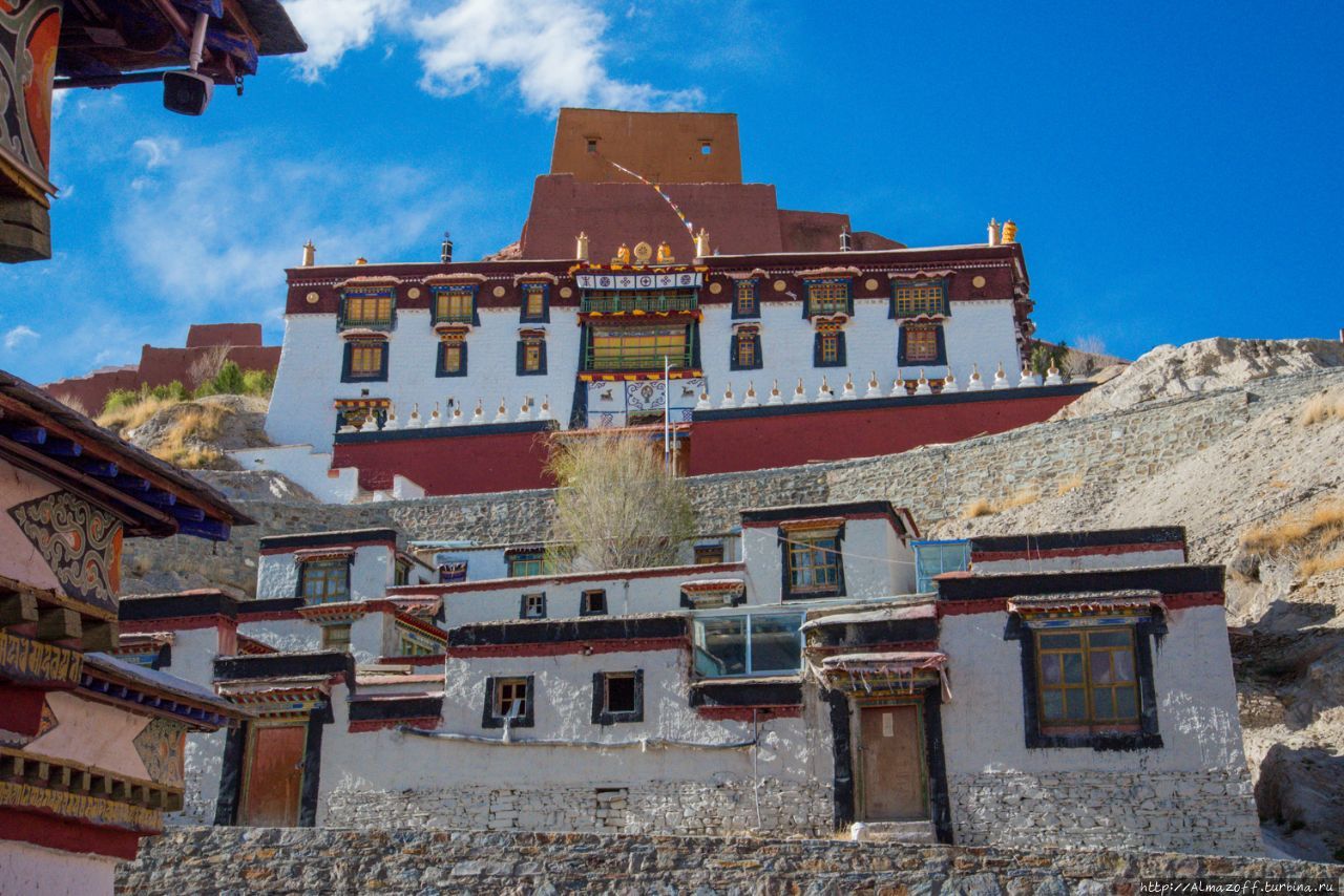Рядом с фортом находится знаменитый монастырь Пелкхор Чоде с самой большой ступой в Тибете, которая называется Кумбум, ступа Тысячи Будд. Монастырь был основан в 1418 году первым Панчен Релдрупом и местным королём Рабтен Кунзангом и с тех пор не разрушался, и ступа не разрушалась, и во время Культурной Революции он тоже практически не пострадал. Поэтому можно увидеть внутри ступы интереснейшие изображение различных Будда-форм.