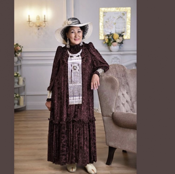 В благородном бархатном халадае позировала «цветочная и виноградная королева» Евдокия Гаврильева.