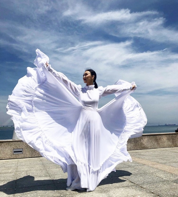 Сардана Трофимова, мастер спорта международного класса, двукратная чемпионка России по марафону, член сборной России по марафону выбрала халадай, как нам показалось, близкий по духу к стилю бохо.