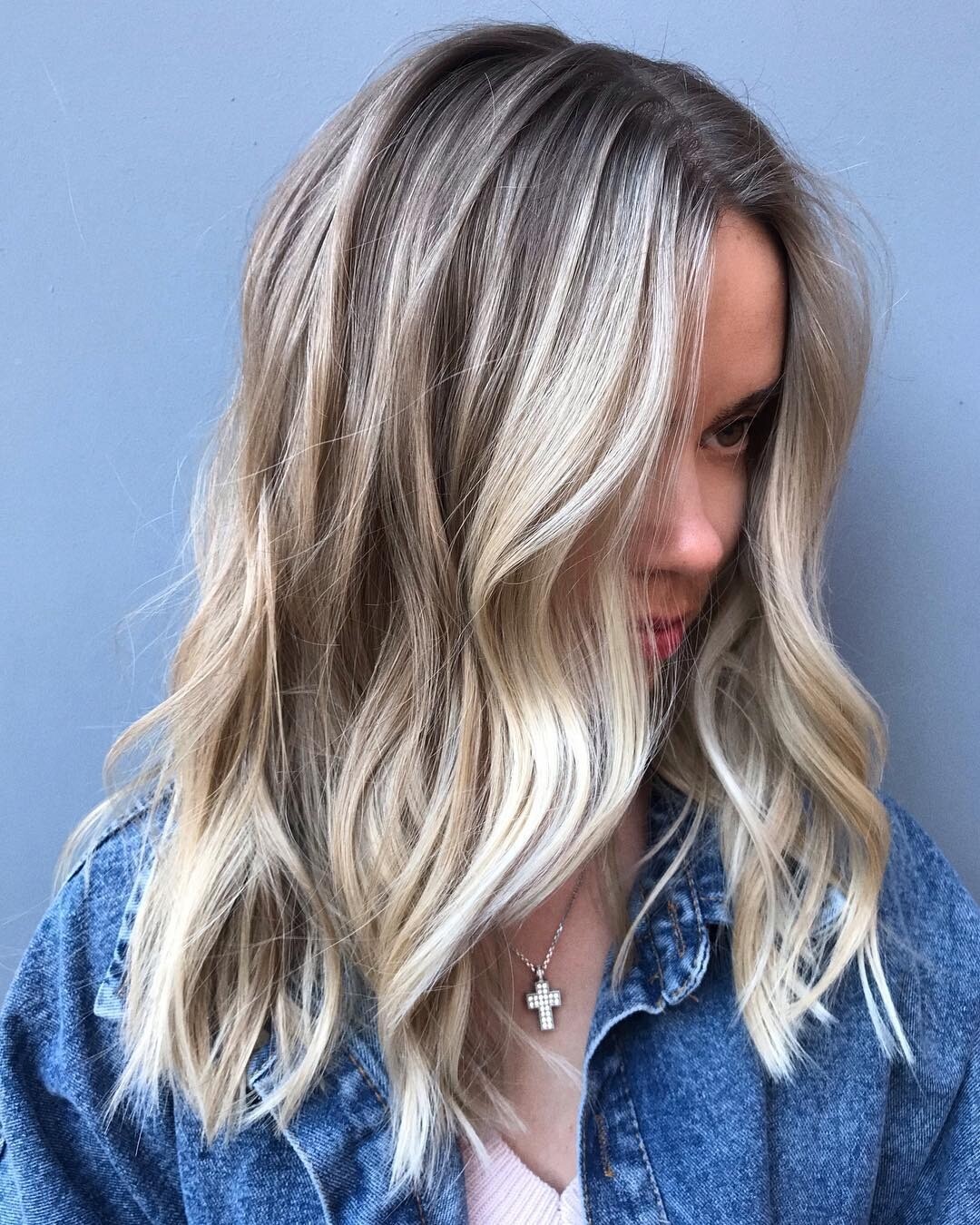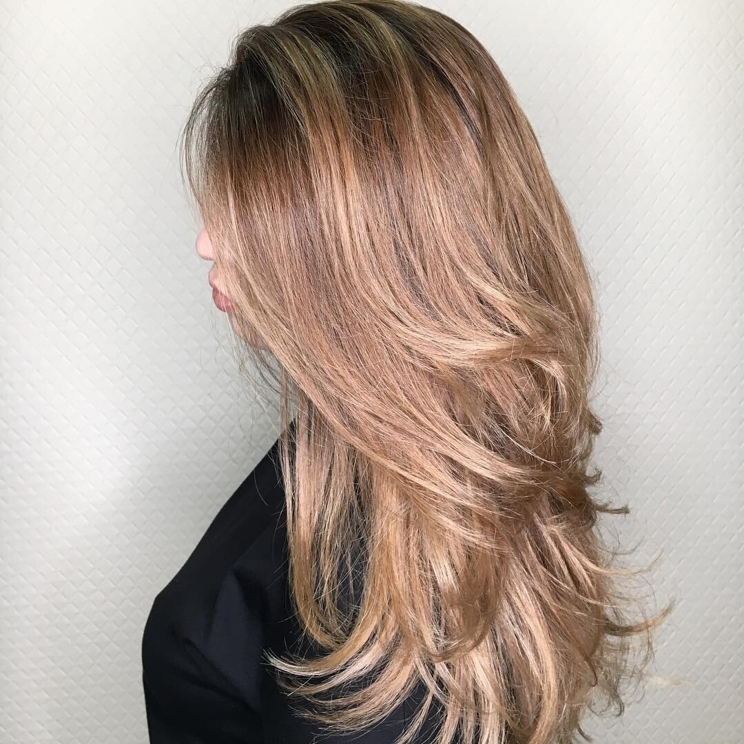 - Попробуй сложное окрашивание, сделав некоторые пряди светлее (такого результата позволяют добиться многие техники, в числе которых мелирование, шатуш и балаяж). За счет разницы в оттенках появится визуальный объем, волосы будут выглядеть гуще.