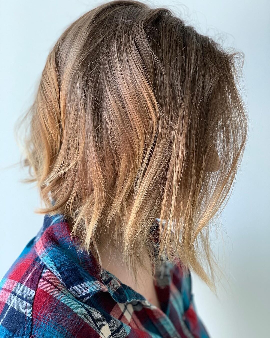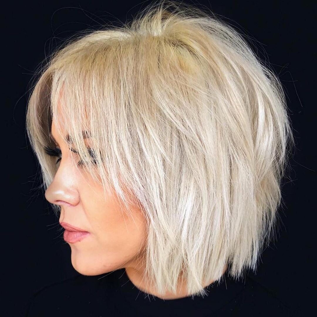 Стрижка шегги-боб на средние волосы, придающая объем