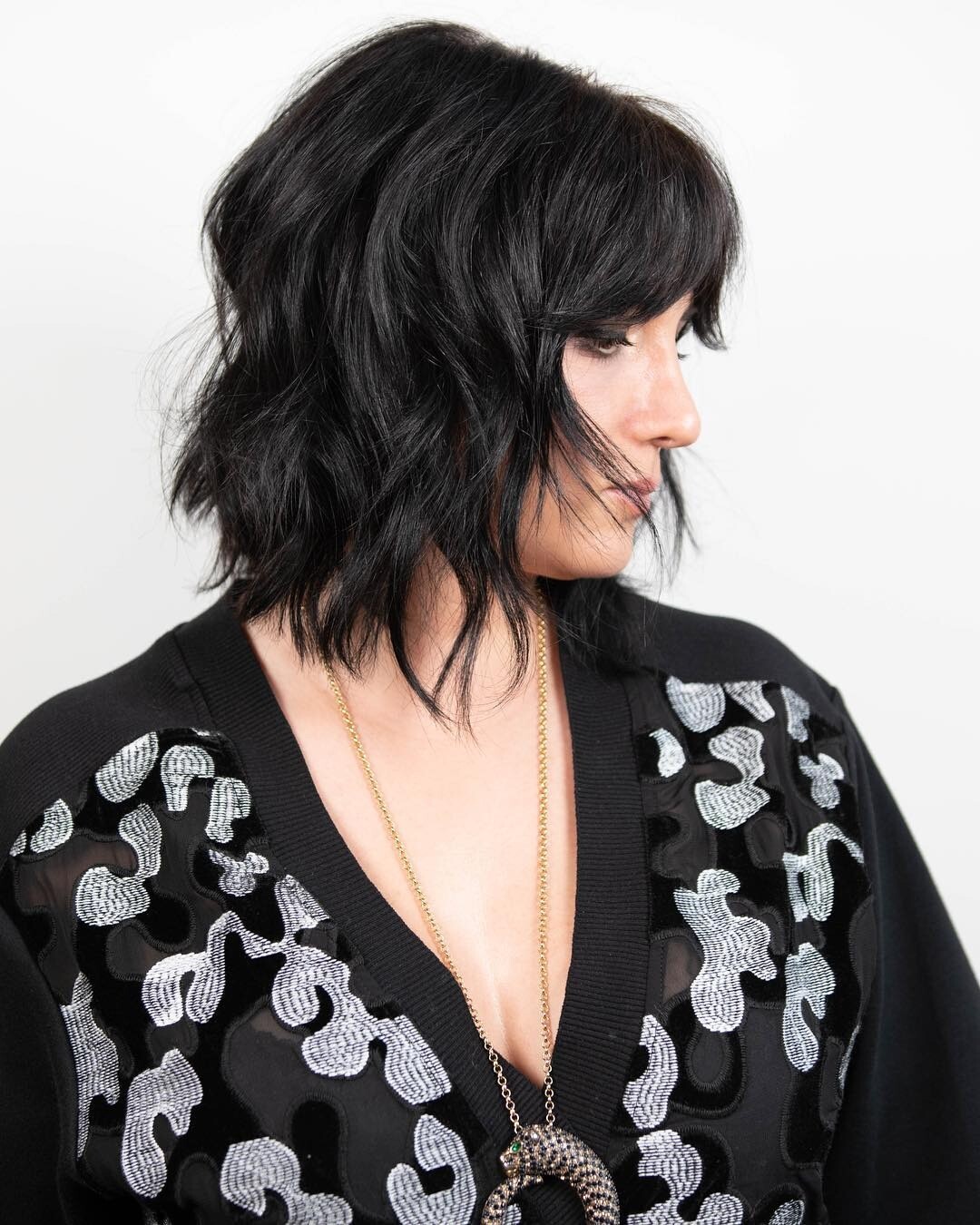 Шегги-боб подходит почти всем. Он будет выглядеть стильно и актуально в любом возрасте и при любом типе лица. Он может визуально «вытянуть» слишком круглое лицо, смягчить острые черты и добавить объем. Он одинаково хорошо будет смотреться на прямых, кудрявых или слегка волнистых прядях, с челкой или без нее.