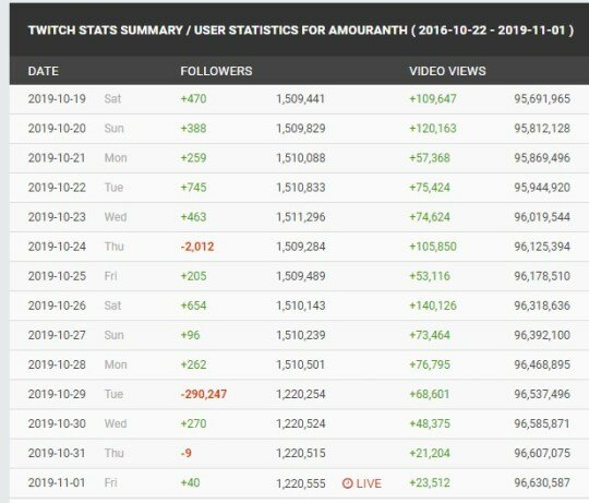 Последние несколько месяцев стали для девушки настоящими американскими горками, когда в сентябре ее забанили на Twitch за «случайный засвет». После трех дней блокировки ее аудитория удвоилась - девушка получила 410 000 подписчиков за неделю. Однако 29 октября количество фолловеров Amouranth резко сократилось на 290 тысяч без объяснения причины. Пользователи Сети считают, что администрация просто удалила ботов с ее канала.