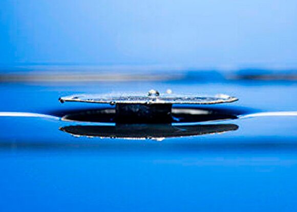 Специалисты обработали металлическую поверхность с помощью фемтосекундного лазера. В результате материал стал абсолютно непотопляемым. Во время погружения в воду вокруг металлического предмета образуется воздушный пузырь, который выталкивает его на поверхность, даже если он сильно поврежден.