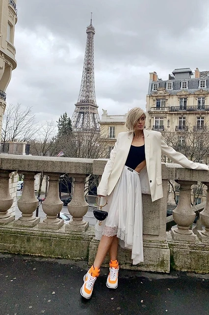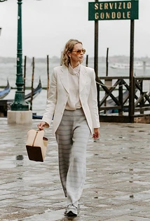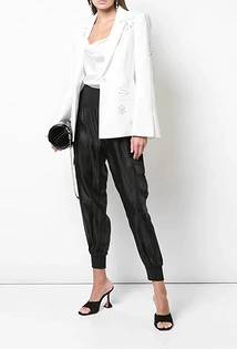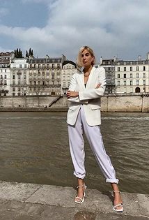 Здесь можно составить бесконечное количество комбинаций, так как белый пиджак — универсальная базовая вещь, которая сочетается с любыми цветами и принтами. Главное — подобрать модель из правильного материала и подходящего фасона. Например, с брюками-карго лучше носить удлиненный оверсайз вариант с поясом с подвесными карманами. То же самое касается брюк в спортивном стиле.