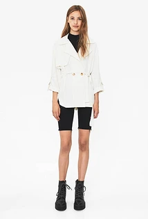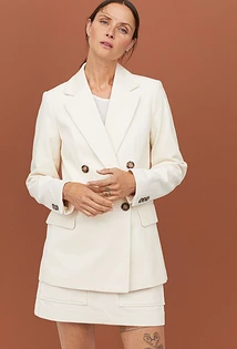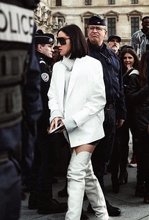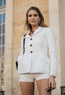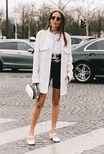 Что касается холодного времени года, то носи белый пиджак со светлыми шортами из шерсти или твида. Дополнят такой дуэт кожаные ботфорты, оверсайз пальто, шарф крупной вязки и шапка. Летом белый пиджак можно носить с велосипедками и босоножками, с джинсовыми шортами и кедами, с баскетбольными шортами и туфлми-лодочками.