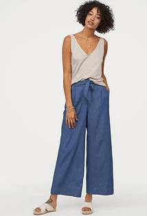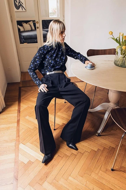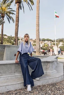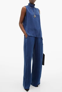 С чем носить широкие синие брюки