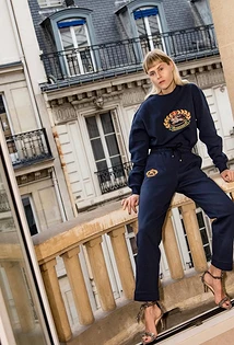 Синие брюки с лампасами гармонично смотрятся с худи и свитшотами в спортивном стиле. Дополни такой комплект кроссовками, текстильными ботильонами на каблуке или классическими туфлями-лодочками на kitten-heel. Можно взять поясную сумку или городской рюкзак, а поверх накинуть тренч, бомбер, джинсовую куртку, ветровку, анорак или прозрачный дождевик (в зависимости от погоды).