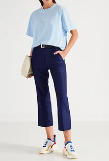 Любая модель брюк хорошо комбинируется с футболками. Последние можно выбрать как однотонные, так и с самыми разными принтами: от привычного анималистичного до сюрреалистических.