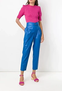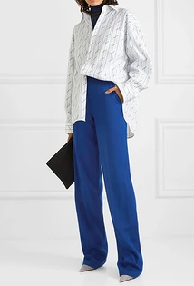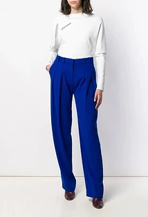 С синими брюками чистого сочного оттенка идеально будут сочетаться белые блузы и рубашки. Это отличный простор, чтобы поэкспериментировать с аксессуарами и обувью. Можно также создать лук в стиле колор-блок, если добавить к этому комплекту фиолетовый, красный или желтый пиджак, контрастную сумки или яркие украшения одного цвета.