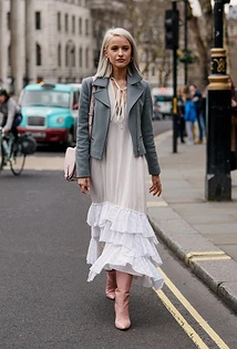 Объемные куртки бывают из разных материалов, начиная с джинсовой ткани и заканчивая грубой кожей. В зависимости от стиля верхней одежды ты можешь подбирать и остальной наряд. Так с кожаной курткой в стиле гранж было бы очень оригинально и свежо надеть нежное женственное платье или деловые брюки. Создавая такие эклектические сочетания, ты будешь на пике моды.
