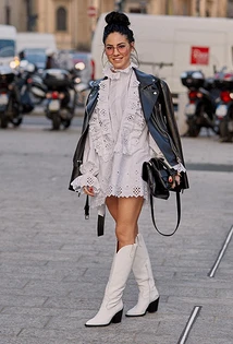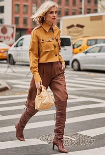 Ковбойские сапоги или аккуратные ботильоны на каблуке-рюмочке — выбор обуви зависит только от твоего собственного желания и настроения. Эклектика — это часть современной моды, поэтому можешь смело мешать несколько стилей сразу, например, деловой и кэжуал.