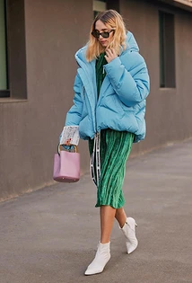 Несмотря на нашу страсть зимой облачиться во что-то максимально темное и немаркое, дизайнеры предлагают нам многообразие дутых моделей голубых, синих, графитовых, розовых, бордовых оттенков. Верхняя одежда в трендовом нетривиальном цвете способна раскрасить любой гардероб в позитивные и жизнерадостные тона.