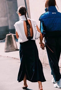 Дутая куртка, чаще всего с капюшоном, — очень модная вещь в грядущем сезоне, особенно объемная, с большими карманами. Такие модели, чаще всего, достаточно хорошо греют, хоть и не прикрывают ягодицы.