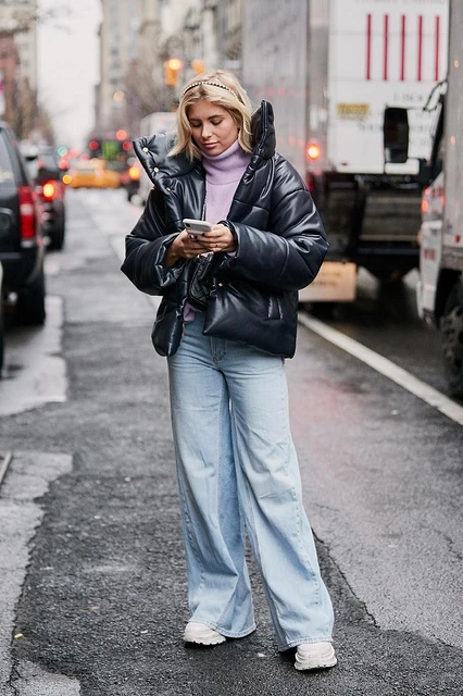 Короткие пуховики можно сочетать практически со всем. Джинсы, классические брюки, леггинсы, плиссированные юбки — все будет гармонично смотреться в сочетании с объемным верхом.