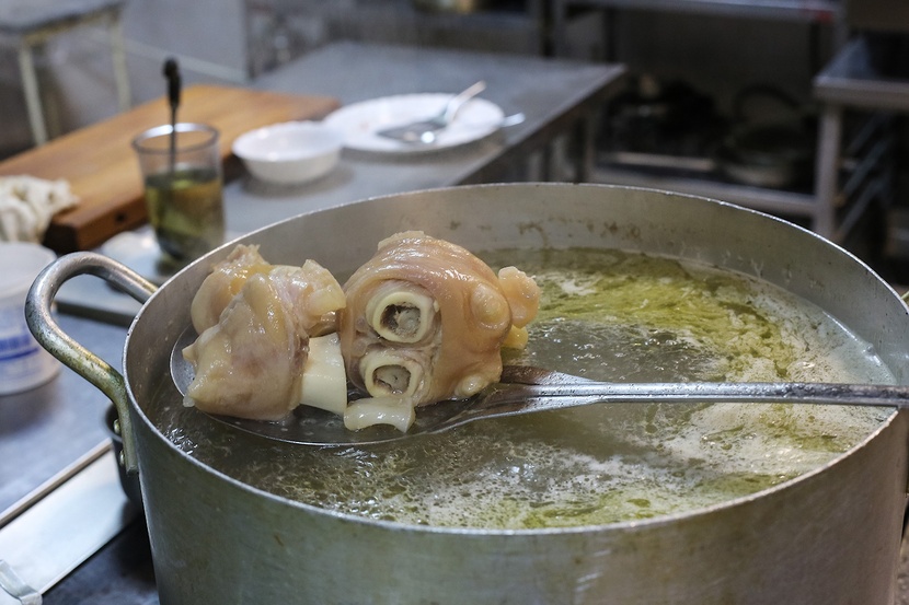 Важно знать, что сначала ноги и рубец варятся отдельно. Соединяются они в одной кастрюле на втором этапе, когда после появления первой накипи весь бульон сливается вместе с остатками неприятных запахов. Кстати, не забудьте, ноги нужно разделить на две-три части по суставам, а рубец нарезать на кусочки. Уже получившие первую термическую обработку продукты заливают свежей водой и ставят на самый медленный огонь — на «единичку», как советует Малхасян.