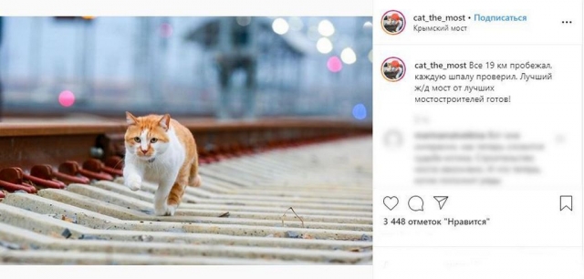Кот Мостик бежит по шпалам Крымского моста. Instagram cat_the_most