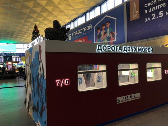 Имитация вагона в Крым на Московском вокзале Петербурга. Дарья Драй ИА REGNUM