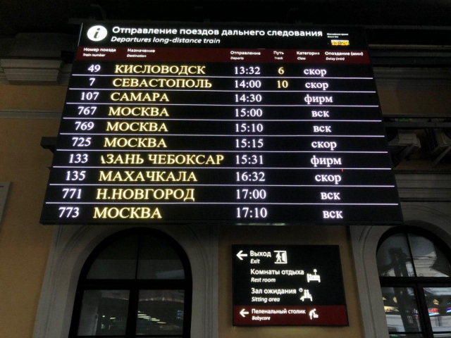 Табло с новым поездом в Крым на Московском вокзале Петербурга. Дарья Драй ИА REGNUM