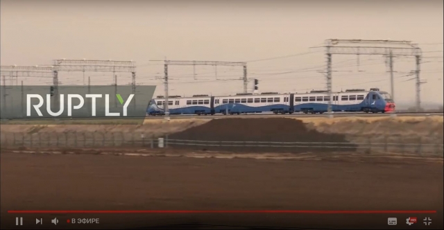 В сторону Крымского моста отправился в путь первый пассажирский состав. Кадры движения этого тестового поезда демонстрирует в прямом эфире телеканал «Россия 24».