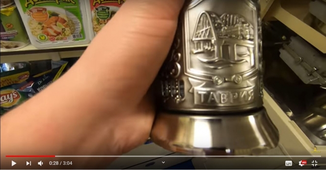 Подстаканник в поезде «Таврия». Цитата из видео «ПЕРВЫЙ ПОЕЗД В КРЫМ — ОБЗОР ВАГОНА» пользователя Александр Михайленко. youtube.com