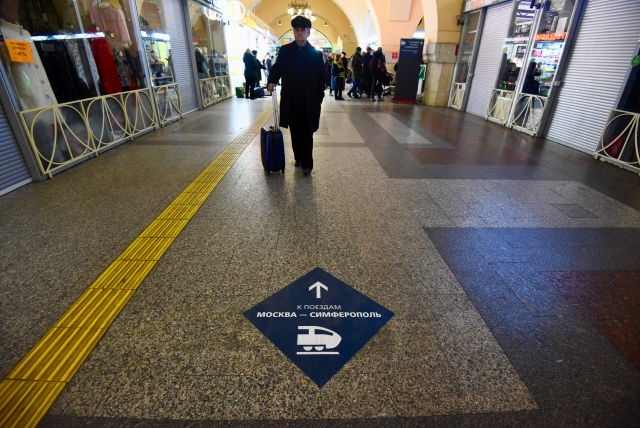Поезд Москва — Симферополь отправится в 23:45 с Казанского вокзала. Для поезда выделили отдельную платформу, пассажиров уже запустили на неё, но в поезд пока зайти нельзя, сообщает корреспондент ИА REGNUM.