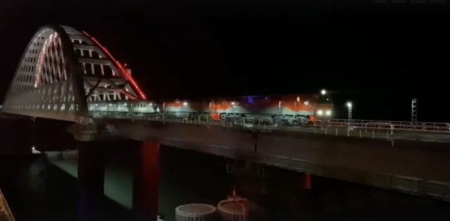 Видеозапись проезда первого пассажирского поезда «Таврия» по Крымскому мосту 25 декабря опубликована в сети Youtube.