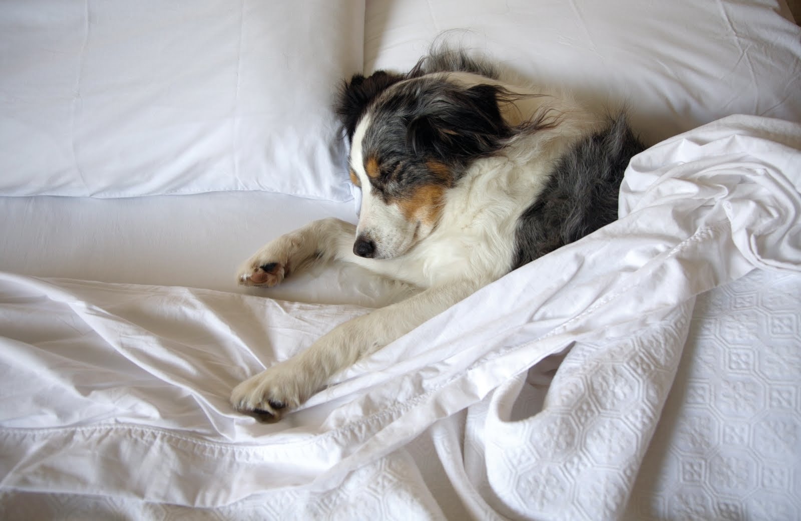 Собака устраивается на кровати, потому что ей в постели удобно? Обычно, животному просто хочется быть ближе к хозяину. Пока у вас нет аллергии или астмы, нет никакого вреда полежать рядом с животным. Впустите его и пожелайте сладких собачьих снов.