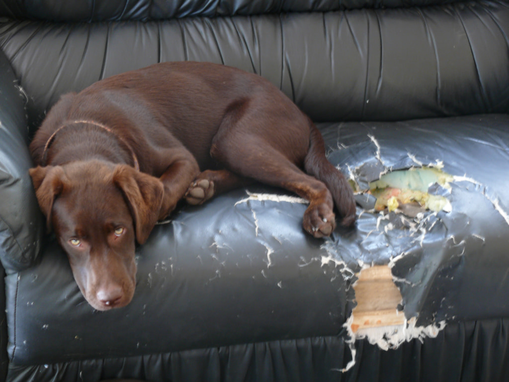 Такое поведение зависит от воспитания собаки. Но может быть так же признаком разлуки. Однако, если питомец еще щенком научен не портить вещи, тогда он просто делает это от скуки. Дайте животному новые игрушки.