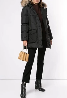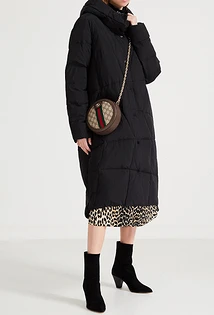 Здесь стоит быть очень внимательной, так как неправильно подобранная сумка к черному пуховику может перечеркнуть весь аутфит и сделать его безвкусным и нелепым. Поэтому откажись от сумок с сезонными принтами и рисунками, а также от моделей в цветах, характерных по большей части для летнего сезона.