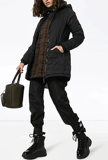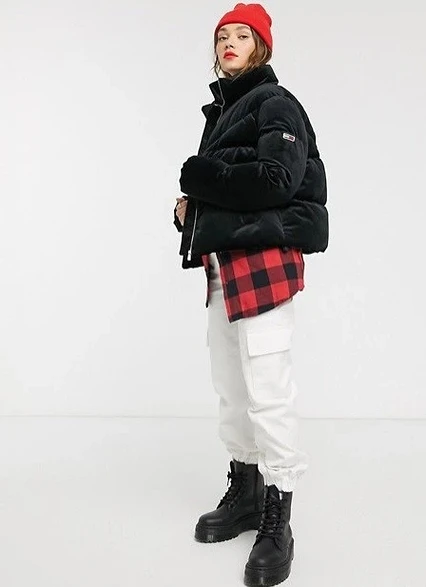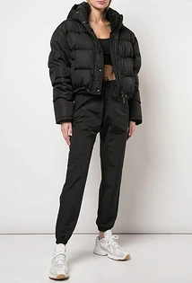 Если ты придерживаешь спортивного или уличного стиля в одежде, то предлагаем выбрать черную зимнюю куртку оверсайз и сочетать ее с женскими брюками-карго или джоггерами. Дополнить лук можно массивными кроссовками, грубыми ботинками, текстильными ботильонами, рюкзаком, поясной сумкой. Гармонично впишется шапка-бини из плотного трикотажа и шарф с логотипом или надписями.