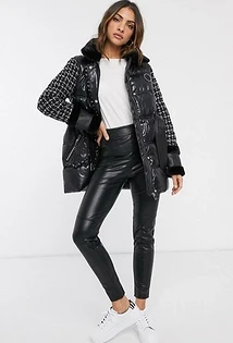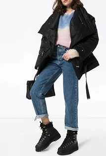Куртки длиной ниже колена советуем комбинировать с широкими, расклешенными или прямыми джинсами. Можно заправить их в высокие сапоги с широким голенищем, чтобы создать крутой современный лук. Не рекомендуем надевать с зимней курткой рваные джинсы: такая комбинация будет выглядеть не очень органично, плюс ко всему, ты, скорее всего, очень быстро замерзнешь.