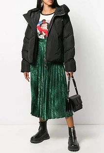 Что касается платьев, то, например, с длинной курткой ты можешь позволить себе надеть практически любое платье, так как верхняя одежда полностью его закроет, а тебе будет тепло. Короткие пуховики можно комбинировать с платьями миди и мини или же с длинными повседневными моделями.