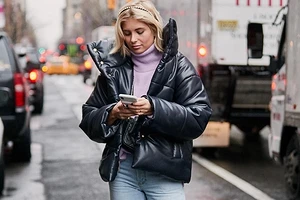Выбери что-то сдержанное: небольшую фактурную сумку коричневого, бордового, темно-зеленого, синего цветов. Также совершенно точно не стоит комбинировать с зимней курткой микросумки и очень большие модели, которые будут только утяжелять образ.