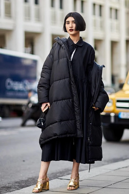 Это довольная спорная вещь, которая подходит далеко не всем девушкам. Если у тебя низкий рост, то выбирай модели не ниже середины икры, иначе ты «потеряешься» в верхней одежде и будешь выглядеть нелепо. Также не советуем носить слишком длинные куртки полным девушкам: образ будет тяжелым, а ты будешь выглядеть тучно.