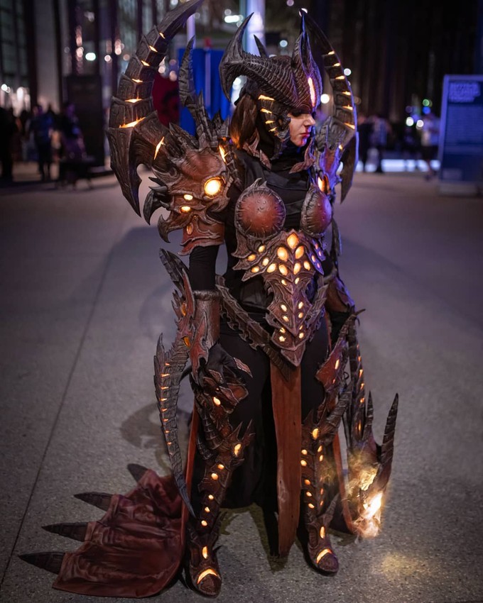 Косплейщица Sonia Grillet опубликовала фотографии нового костюма — Диабло из Diablo 3. На создание косплея ушло более 700 часов, 300 LED-лампочек, паровой механизм и очень много грима.